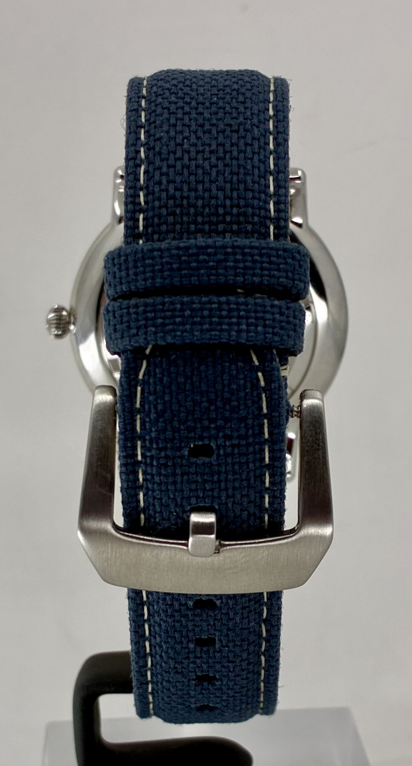 Tactical Comfort: The lightweight blue nylon strap with leather underside offers a durable fit that transitions perfectly from a morning hike to a casual office setting.