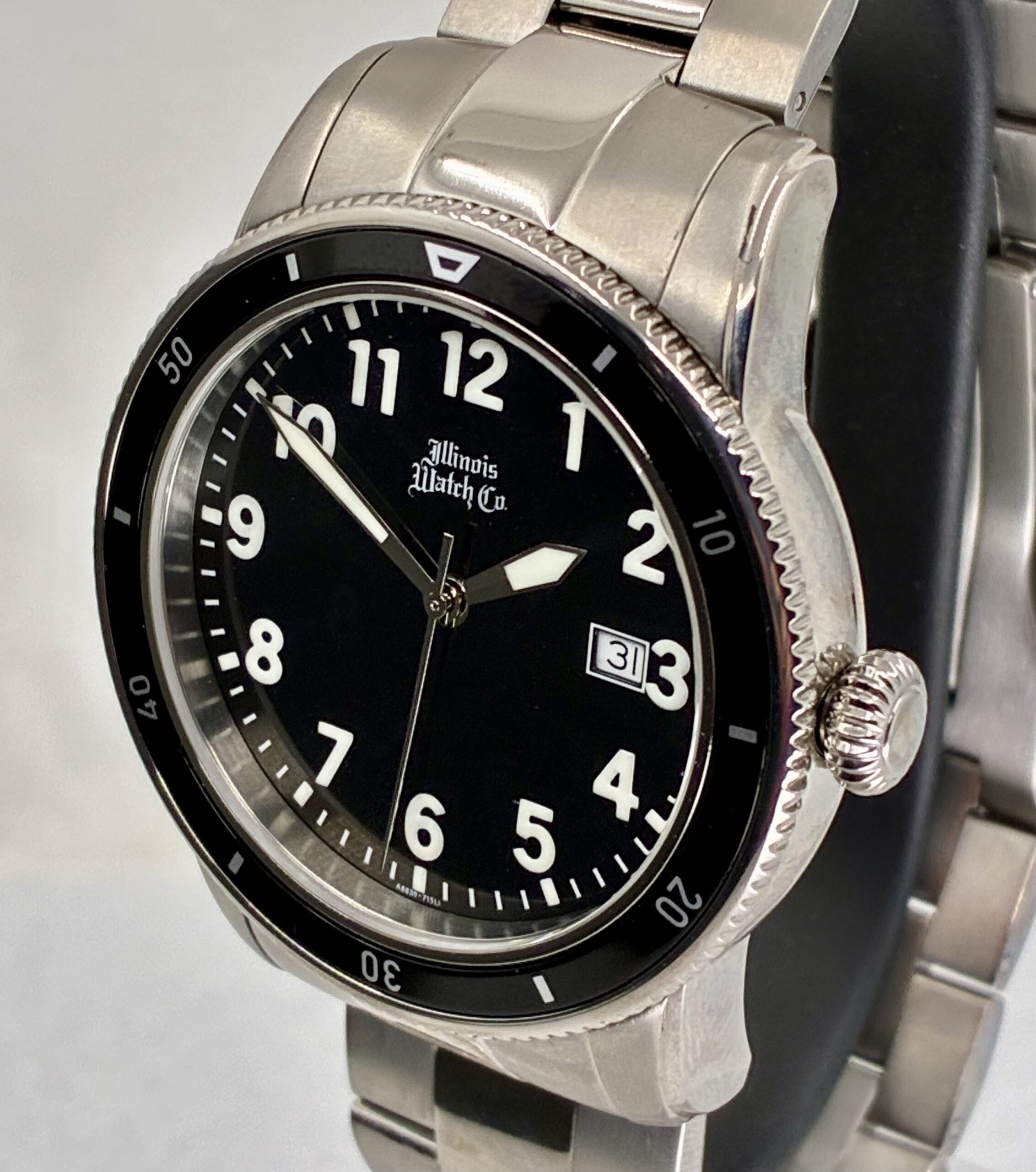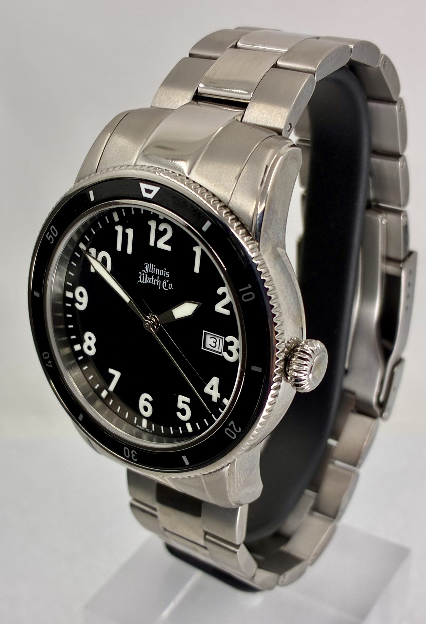Professional Diving Utility: Equipped with a black uni-directional rotating bezel and a secure screw-down crown to ensure precision and safety during underwater excursions.